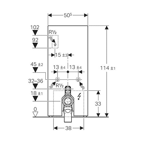 - Water supply connection on the rear centre, bottom, and possible on the left/right - with accessories