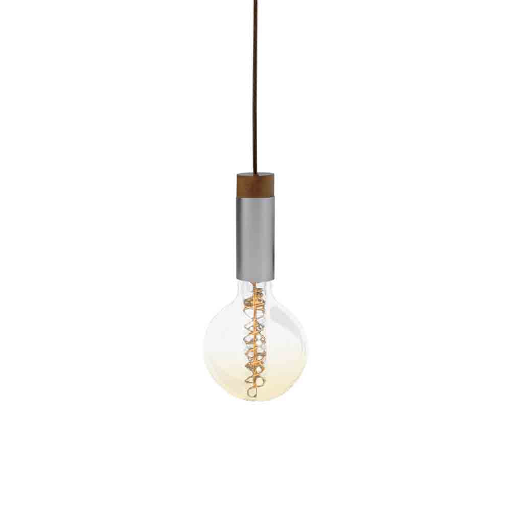 - Pendant with aluminium holder and wood trim.